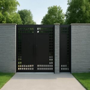 درب حیاط ویلایی با طراحی خاص می تواند علاوه بر افزایش زیبایی نمای ویلا, امنیت بالاتری نیز برای فضای خارجی آن فراهم کند.