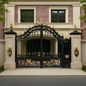 درب فلزی مدل ورسای الهام گرفته از کاخ باشکوه ورسای فرانسه, نقطه تلاقی زیبایی هنری و استحکام صنعتی برای ورودی ویلاها, باغ ها و مجتمع های خاص است.