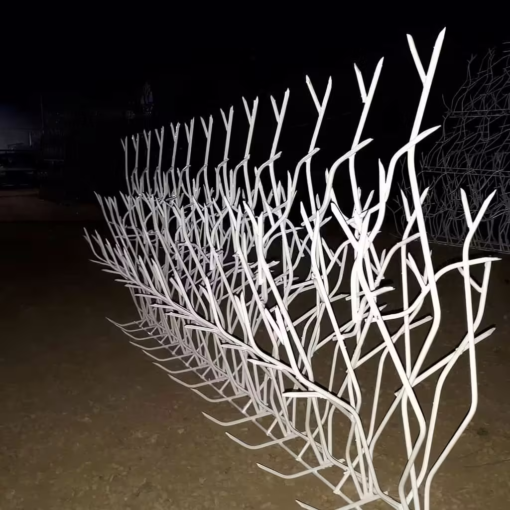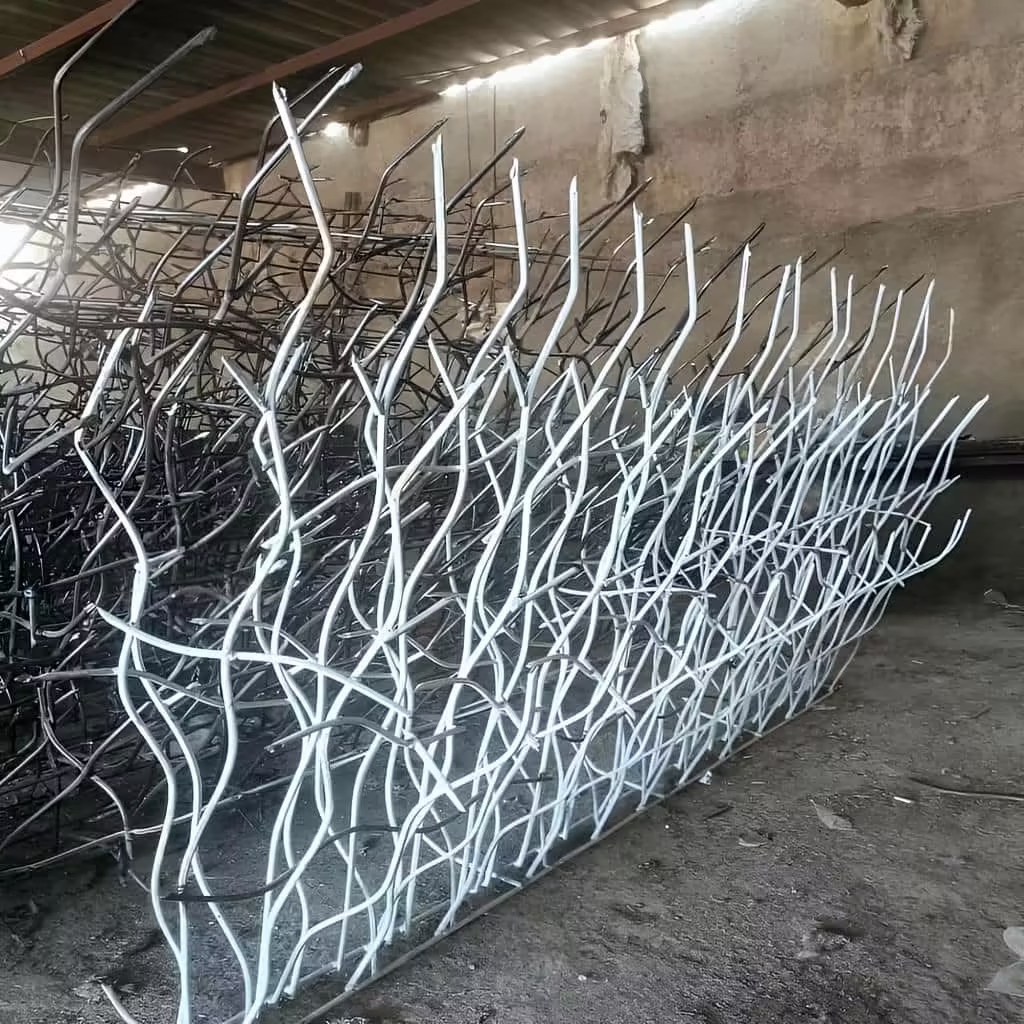 حفاظ شاخ گوزنی پایه بلند از میلگردهای فولادی ۹ یا ۱۰ میلی متری ساخته می شود که با جوش CO2 به هم متصل شده اند. این جوشکاری صنعتی، استحکام و دوام حفاظ را تضمین می کند و در برابر ضربه ها و فشارهای خارجی مقاومت بالایی دارد. همچنین، طراحی نوک تیز و برنده شاخک ها باعث جلوگیری مؤثر از عبور افراد غیرمجاز می شود. تراکم حفاظ ها معمولاً بین ۳۰ تا ۵۰ ردیف در هر دو متر است که هر چه تراکم بیشتر باشد، امنیت بالاتری فراهم می شود. همچنین، رنگ آمیزی کوره ای با رنگ هایی مانند مشکی، سفید یا رنگ های سفارشی، از زنگ زدگی جلوگیری کرده و زیبایی نمای ساختمان را حفظ می کند.