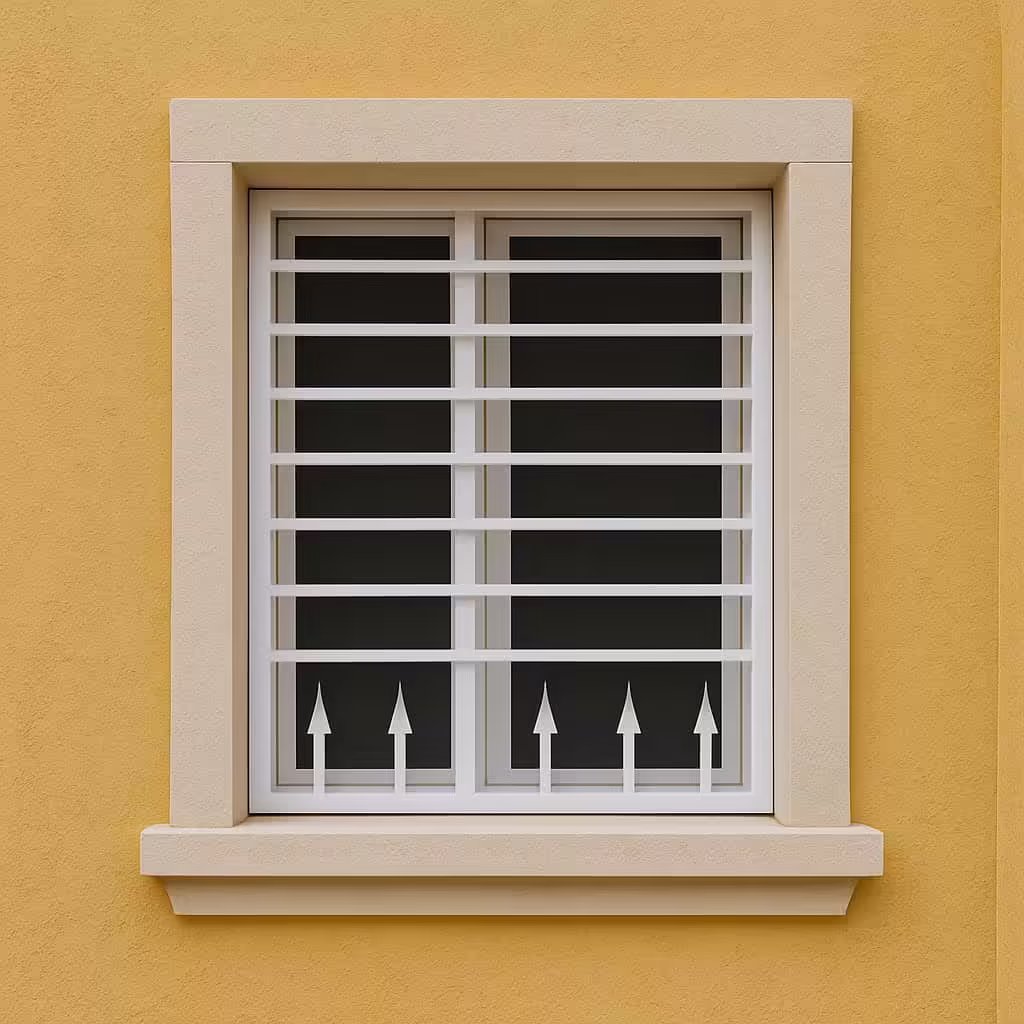 حفاظ پنجره تیغدار مخصوص طبقات اول و همکف، ساختمان های ویلایی، اداری، پروژه های نما آجری، سنگی یا سیمانی طراحی شده است. سرنیزه های افقی علاوه بر نقش تزئینی، امنیت مضاعف برای پنجره های نزدیک به حیاط یا خیابان فراهم می کنند و بازدارندگی بسیار بالایی دارند.