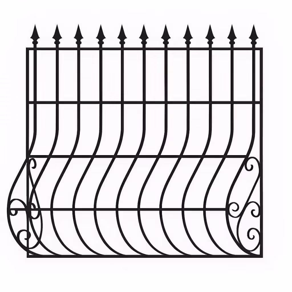 ساختار اصلی این مدل از پروفیل آهنی مقاوم ۲۰×۲۰ یا ۳۰×۳۰ میلی متر و میلگرد ۱۴ با اتصالات جوشکاری صنعتی ساخته شده است. در بخش فوقانی، سرنیزه های فلزی قوی با دقت نصب می شوند و پوشش رنگ کوره ای الکترواستاتیک دوام بی نظیری در مقابل رطوبت، خوردگی و نور آفتاب ایجاد می کند. هر قوس هنری و منحنی، نتیجه فرم دهی حرفه ای و طراحی منحصربه فرد است.