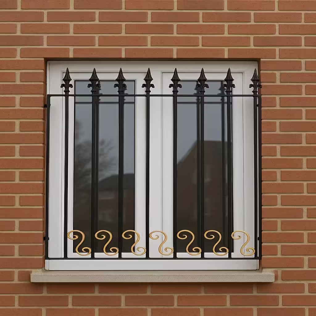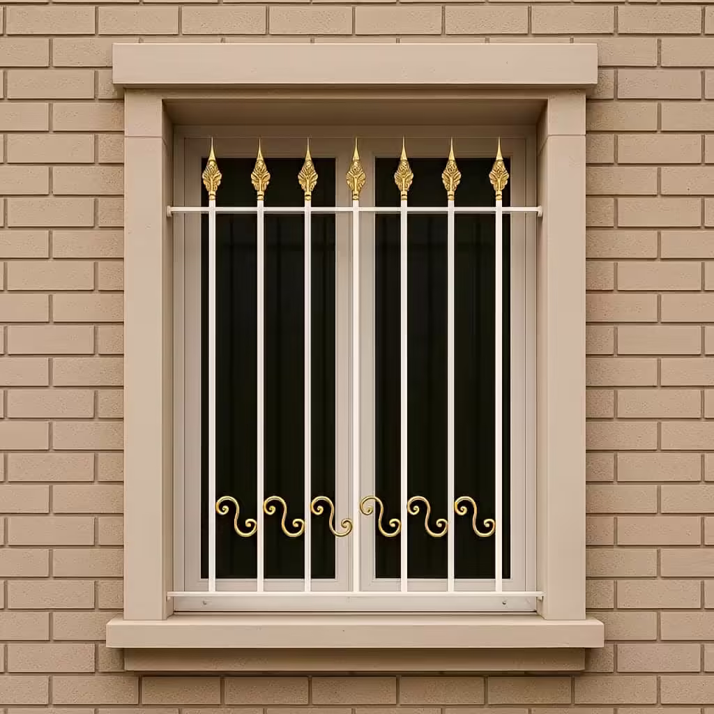 ساختار حفاظ از میله های فولادی 20×20 میلی متر, فریم مقاوم 30×30 و سرنیزه های تزئینی با آبکاری ضدزنگ تشکیل شده است. مارپیچ های فرفورژه با دقت بالا در پایین کار نصب می شوند تا همزمان جلوه کلاسیک و امنیت مضاعف ایجاد کنند. رنگ آمیزی با پودر الکترواستاتیک در دمای بالا صورت می گیرد تا مقاومت حفاظ در هر شرایط جوی تضمین شود.