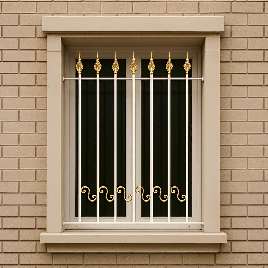 این مدل، تلفیقی از امنیت حداکثری و جلوه بصری شکیل است. سرنیزههای طلایی در بالای کار بازدارندگی عملی دارند و مارپیچهای پایین جلوهای هنری و متمایز ایجاد میکنند. نصب سریع و آسان، خدمات پس از فروش فوری و کیفیت تضمین شده، از مزیتهای این محصول ویژه است.