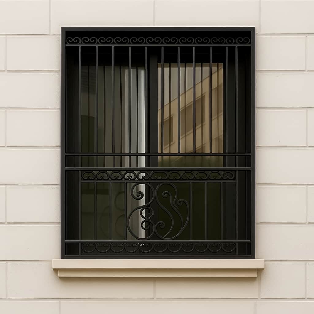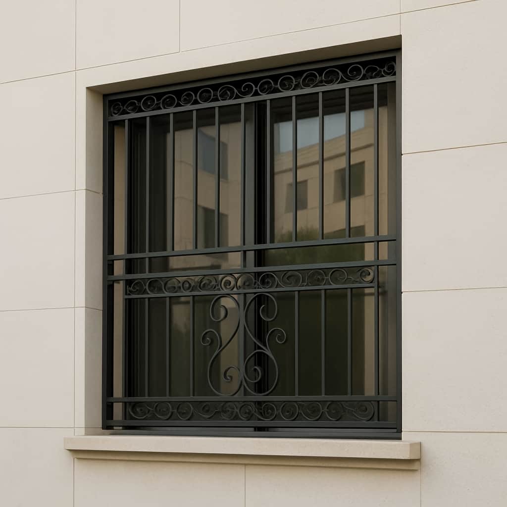 این مدل از میلههای عمودی پروفیل ۲۰×۲۰ میلیمتر و فرفورژههای دستساز فرانسوی ساخته شده است. طراحی مارپیچ کلاسیک، فریم مستحکم و پوشش کورهای، ترکیبی از دوام، زیبایی و امنیت را فراهم میکند. مونتاژ دقیق با جوشکاری CO2 کیفیت بالای اتصال اجزا را تضمین میکند.