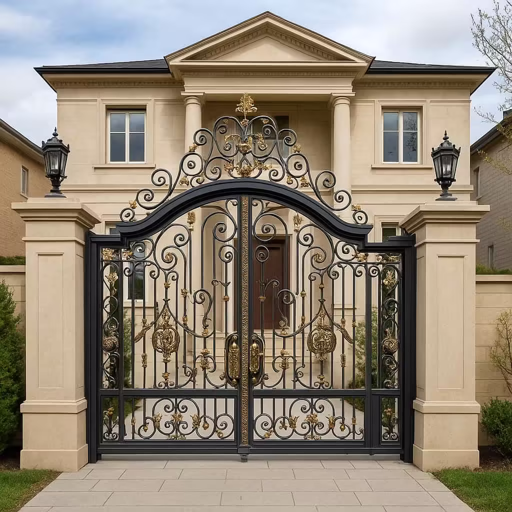 جزئیات تزئینی فرفورژه، کاملاً به صورت یکپارچه و با اتصالات جوش CO₂ صنعتی اجرا می‌شود تا استحکام، ایمنی و زیبایی به طور همزمان تامین شود. پوشش نهایی با رنگ پودری کوره‌ای الکترواستاتیک انجام می‌شود که نه تنها سطحی صاف و براق ایجاد می‌کند، بلکه این محصول را به شدت در برابر رطوبت، اشعه آفتاب و خط و خش مقاوم می‌سازد. درب پیچک به دو صورت دولنگه (ماشین‌رو) و تک لنگه (نفررو) قابل سفارش است و ابعاد آن بسته به نیاز پروژه شما کاملاً سفارشی‌پذیر است.